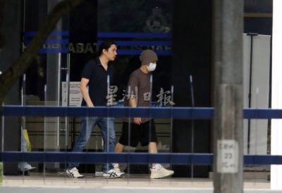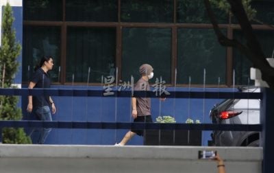 其代表律师郑清丰与两名男女于今日下午2时13分,乘坐一辆黑色马自达休旅车到达金马警区总部。