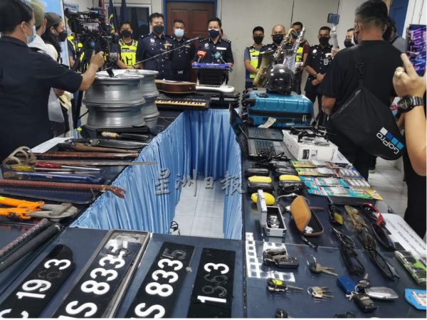 (古晋28日讯)古晋警区建功!捣破涉及多宗住家破窃以及汽车偷窃案的“Piji”团伙,拘捕2名男主谋和负责营销赃物的女子,宣告侦破24宗损失约值43万令吉的罪案。