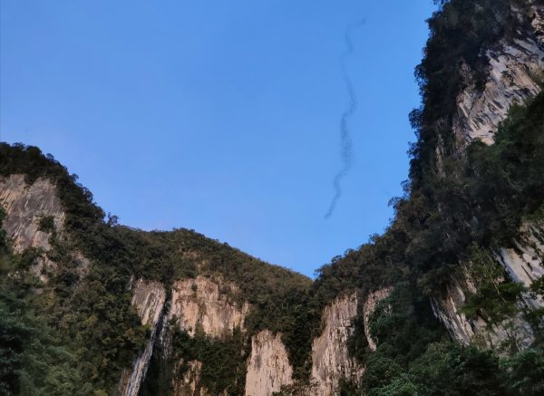 鹿洞及朗洞的洞穴游览在每天傍晚时分结束,游客会聚集在一个宽阔的观景台,等待着重头戏一一百万蝙蝠出洞觅食的奇观。