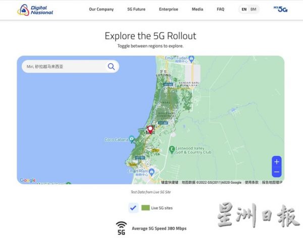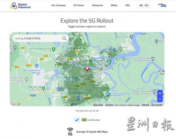根据国家数字有限公司(DNB)官网(https://www.digital-nasional.com.my/),砂拉越目前拥有5G网络的地区是首府古晋及美里,诗巫及民都鲁等地暂未有这服务。