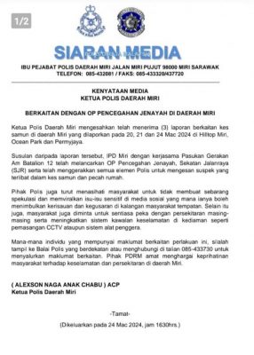 连续发生3宗入屋抢劫案.美里警方全员出动缉匪