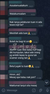 男子说,今早陆续有新人开始“排队”询问该如何汇款投资,令他对这个投资群感到可疑,希望通过媒体公开此现象,以免有人受诱惑而被骗钱。