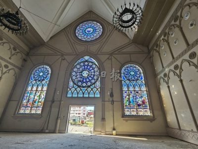 (古晋18日讯)“美哉,壮哉!” 工程已进入竣工倒数期的天主教新圣彼得教堂,在内部已拆除铁架后,踏入教堂内,环顾四周是一览无遗的彩绘玻璃,凸显这座采用欧洲哥德式建筑设计风格的教堂,壮观并带给人视觉震撼的一面。