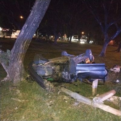 (古晋27日讯)71岁友族律师昨晚驱车前往一间超市载廿余岁女儿放工后返回石角味源港住家途中,轿车失控冲向路旁并飞越沟渠,复猛撞沟渠旁一棵树再翻覆,导致律师重伤当场丧命,女儿受伤入院。