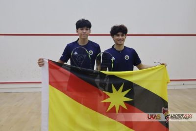(古晋20日讯)砂壁球男双组合今天在决赛中,以2比1成功收服槟城组合,为砂拉越阵营贡献第2面壁球金牌。