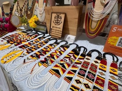 另外,在马运会嘉年华上,除了售有周边产品之外,现场也售有各式各样极具砂拉越特色的手工艺品以及本地美食,如珠串耳环、项链、编织篮及硕莪糊等。