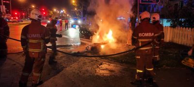 (古晉12日訊)昨晚十一时许,一辆摩托车途经古晋市砂中央医院附近路段时失控冲向路旁复猛撞一棵树并起火烧毁,被抛落路上的25岁陈姓骑士重伤倒地不起,被紧急送院抢救不果。
