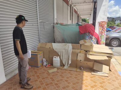 据了解,该幢排店屋底楼有数单位仍空置,2020年疫情爆发政府实施行动管制令时,一名四十多岁的街友,便开始在该处“定居”。他平时以乞讨,捡回收物为生。他曾被带往街友收留中心,但因不习惯中心里的生活,又回到他的五脚基住小窝。
