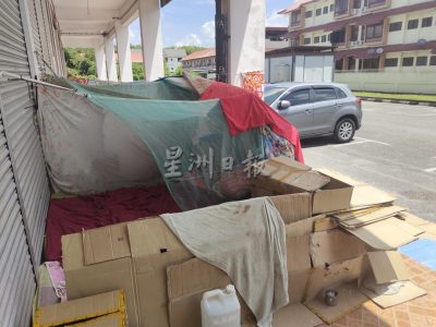 (诗巫1日讯) 从疫情爆发开始至今,甘榜拿督店屋一空置单位的五脚基成了一名流浪汉的温暖卧室,一住便是4年多,近两三个月该名流浪汉失去踪影后,马上又有“新人”入住。四年多来附近商家虽感到忧心,但未驱赶,也未见执法单位采取行动。