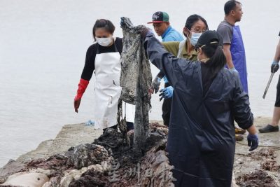 解剖工作完成后,当局在多个不同单位协助下清理鲸鱼残骸,以减少腐烂残骸所引起的恶臭。