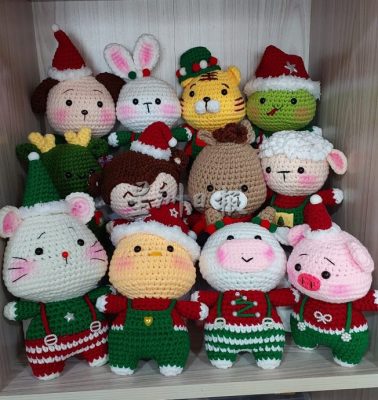 (美里25日讯)圣诞节及农历新年即将来临,擅长编织毛线玩偶的陈美翠发挥创意,让中国十二生肖换上以圣诞节主色的红色和绿色服装,迎接圣诞节。