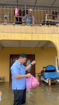 (美里30日讯)美里区国会议员赵俊文今早联同美里社区志愿者团队及美里国会议员服务中心服务团队到灾区为灾民提供食物及必需品。