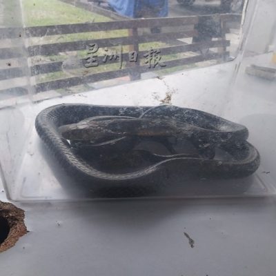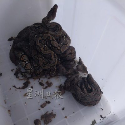 蜷缩一团为数不祥的小蟒蛇,先后在民宅等地被捕获,迄今仍被饲养在新邦迪卡路的民防部队总部。