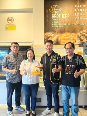 今次的“连心捐血日”活动获得美里双胞胎烘焙坊赞助100份健康吐司面包予首100名成功捐血者,美里双胞胎烘焙坊创办人之一的李俊达今早移交赞助品予星洲日报北砂区经理余俐葭,出席者包括星洲日报北砂区副采访主任杨万勇。