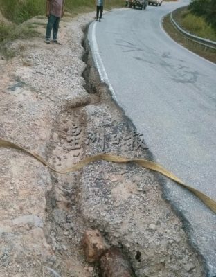 马鲁帝美里连贯道路 . 多处路段路肩塌陷