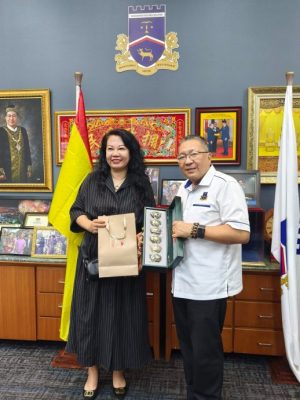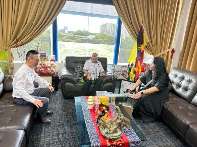 (古晋26日讯)中国上海宝碳新能源环保科技有限公司的代表杨海玲日前礼貌拜会古晋南市市长拿督黄鸿圣,交流并探讨两地商贸合作,尤其是新能源市场开发,如碳储能和碳交易等。