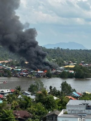 甘榜日拔8木屋遭大火吞噬 .浓烟冲天