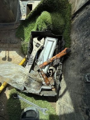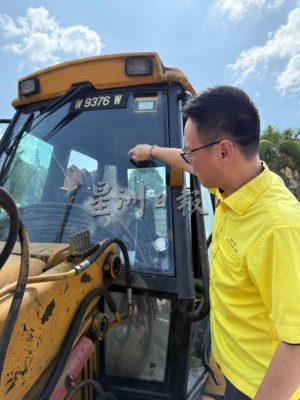 此外,装修商停在一旁的挖泥机的车窗玻璃也遭男子用铁锤击破。此外,男子还用硬物猛力敲击用来围住装修范围的锌片,发出噪音,影响居民的安宁。