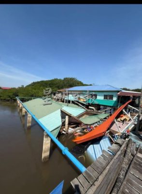 在老越阿哇阿哇区的甘榜瑟伯朗旧清真寺旁的一栋房屋今早突然倒塌,2名分别为18岁与12岁的兄弟及时逃出。