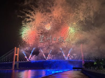 (民都鲁24日讯)原名为“日拔大桥”的斜拉桥,昨晚在砂总理拿督巴丁宜阿邦佐哈里的宣布下,更名为“敦泰益玛目大桥”,在璀璨灯光与夜空烟火映衬下,辉映民都鲁河畔,熠熠生辉!