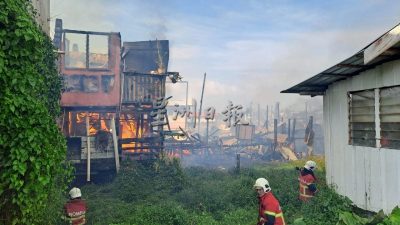 (诗巫25日讯)诗巫甘榜希礼今早再发生大火,导致5座木屋完全烧毁,2座木屋被烧约20%。一名60余岁肢障男子在火患发生后跃窗逃生, 导致脚受伤送医。