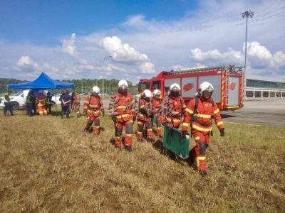此次演习共动员超过57人参与,包括民都鲁消防与拯救局的12名各级消拯员、8名机场消防队员、4名医护人员、7名机场保安、26名机场工作人员,以及多位来自民都鲁警方的代表。