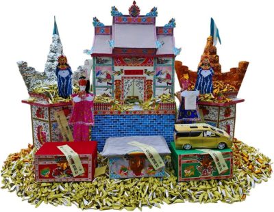 供品方面,会准备灵屋,象征为先人建造安居之所,让亡灵在冥界有温暖家园;金山银山,寓意财源丰盛,冥界富足无忧;金童玉女,侍奉先人左右,象征晚辈孝心与长伴左右;甲万,此乃冥界的财富宝箱,寓意金银满库;汽车,象征代步工具,让先人在冥界出行方便;折好的金银纸则化作冥币,供先人在冥界日常花费。
