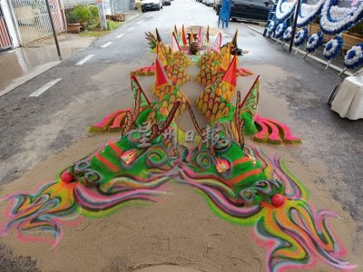 在砂拉越,中元节是地方社会一年中规模盛大的民俗活动之一。部分商家会赞助香烛、祭品,或设宴招待参与的信众,现场也会举办文娱晚会,场面热闹又庄严。