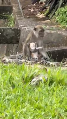 上周四傍晚约6时,另一名巫裔女居民在群组分享拍摄于Ficus路路旁的视频,一只猴子当时抱着一只黄白色小猫,时而停留时而跑动。猴子不时翻动小猫,而小猫头部软绵绵歪向一侧,同样毫无反应,疑似已死去。
