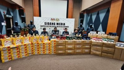 砂关税局局长拿督诺利占今午召开新闻发布会时表示,上述取缔行动于7月30日分别在美里埔奕6号路及美里东林工业区一带展开,两案总共起获302万支香烟与997.92公升烈酒,这些物品必须有进口准证,因此抵触2023年关税局(禁止进口类)法令。