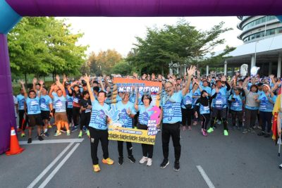 高明亮(前排左二)参加2024年美里站无声义跑活动。