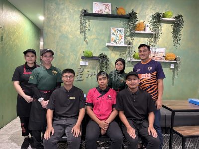 乡村及区域发展部副部长拿督鲁比雅旺日前到DuriCendol餐厅视察工作时,大大赞扬莫哈末哈芝米,对他餐厅的榴莲煎蕊及烘培食物给予好评。