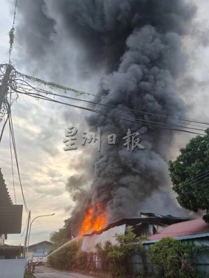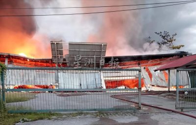 (古晋3日讯)民达华工业区一间工厂今晨发生大火,一座仓库全面陷入火海,所幸无造成人命伤亡。