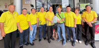 潘隆铭与党员献出100令吉 . 爱心援金购物转赠需要者