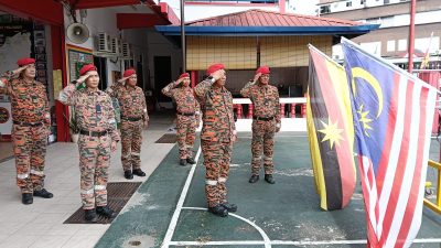 消拯官员奥玛指,这是该局每天早上的例行工作,主要是让全体消拯员时刻保持对国家的敬爱,和热爱砂拉越这片生于斯长于斯的土地。