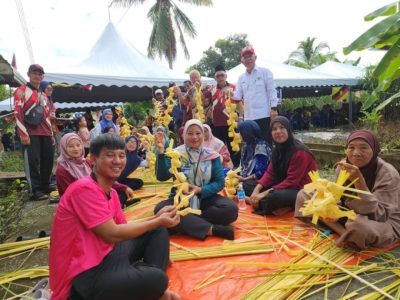 当日活动内容丰富多彩,嘉宾与村民一同参与点球比赛、编织椰叶粽子比赛等趣味环节,妇女组与筹委踊跃参与,气氛热闹非凡。嘉宾也受邀主持“团结香味虾料理比赛”的象征性启动仪式,并为甘榜古邦希礼发展及安全委员会理事颁发感谢状。