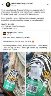 她是在脸书转发网民贴文,后者表达对酒类产品以“山都望”为名称感到不满。