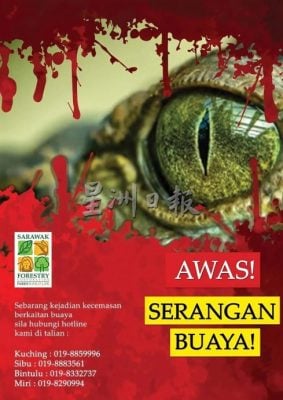砂森林企业机构呼吁公众保存紧急联络电话,以便在发生意外时能及时求助。若发现鳄鱼踪迹或遇上紧急情况,可立即联络该机构热线,即古晋(019-8859996)、诗巫(019-8883561)、民都鲁(019-8332737)及美里(019-8290994)。