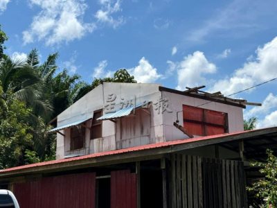 (马鲁帝24日讯)丁渣区昨午3时许突发强风暴雨,导致弄吉刚A长屋21户住家屋顶被掀开,所幸未造成人命伤亡。