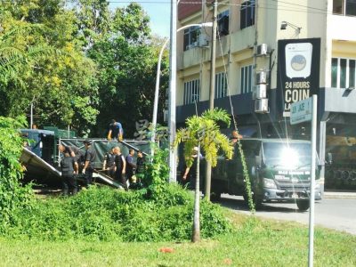 美里市政局执法部日前拆除设在布米柯商业中心一旁空地的非法摊位。(档案照)