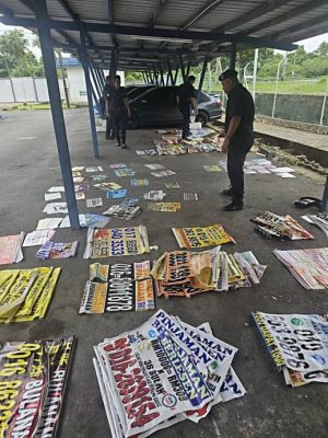 (古晋1日讯)古晋警方昨日展开“秃鹰行动”(Op Vulture),共拆下757张涉嫌非法放贷的广告布条,行动覆盖古晋多个地区。