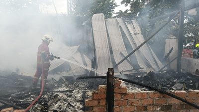 甘榜乌沙哈再也峇鲁两座木屋遭大火烧毁。