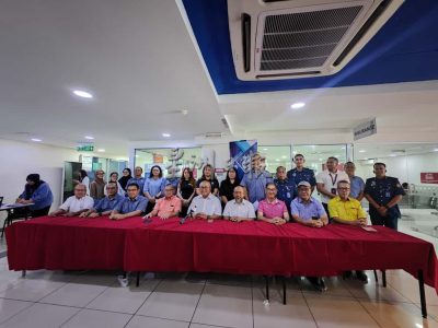 坐者左五起为美里市长俞小珊及副市长阿里芬等市政局职员及市议员昨日在2025年第9场市政局会客日活动合影。