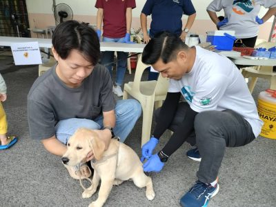 黄鸿圣今日在南市市政局于砂篮球总会举办的今年第5场狗只绝育、狂犬病疫苗接种及植入芯片活动上,呼吁所有宠物饲主积极配合,无需再为未履行责任找借口。