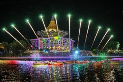 活动亮点为三大地标同步启用标志性灯光系统的仪式,包括位于武吉萧(Bukit Siol)的古晋北市市政局大楼、古晋河滨公园及电动渡船服务(E-Penambang)。当璀璨灯光与烟花齐放,绚丽光影照亮夜空,为古晋夜色增添一抹耀眼色彩,也象征着城市在传统与现代之间的完美融合。