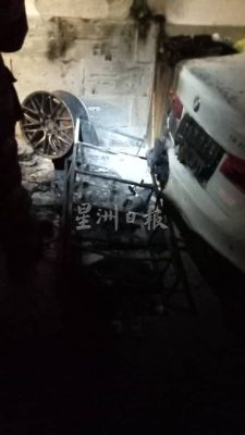 民宅遭掷汽油弹 . 屋前宝马烧毁