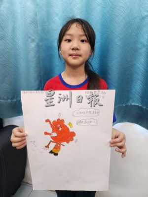 就读于中正小学四年级的郭恩娜喜欢画画,活动中的画画创作环节是她最喜欢的。她画了一幅《垃圾从天而降》,画中有一位拿着扫把、正在喷火的生气王子,地上还有很多垃圾。王子嘴里嘟囔着:“明明都扫好了,为什么还有?真奇怪!”