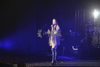 (古晋11日讯)“全民情歌天后”丁当今晚强势空降猫城古晋!团结室内体育馆瞬间化身为热情澎湃的音乐海洋,尖叫声此起彼落,气氛燃到最高点。丁当以一首首脍炙人口的情歌,带领全场观众重温满满回忆与感动,让现场沉浸在浪漫与激情交织的音乐浪潮中。