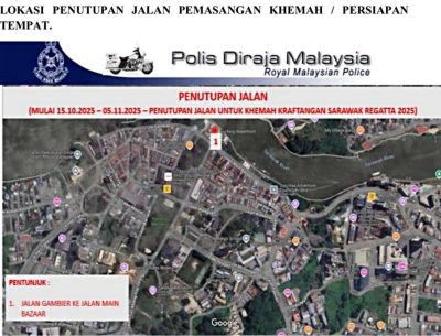 (古晋14日讯)配合“2025年砂拉越赛船盛会暨古晋河滨公园嘉年华”,警方将从本月15日起实施多项道路封闭与改道措施,提醒民众提早规划行程及选择替代路线,以免陷入交通拥堵。