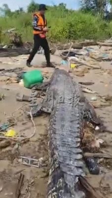 鳄鱼死尸今早由渔民发现,并通知有关当局。随后,单位人员陆续抵达现场,并展开调查与行动。